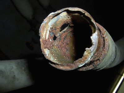 Erfahrungsgemäß sind die Wasserrohre nach vorne zum Kühler mit den Jahren auch schon etwas gealtert. Dazu kommt, das die Rohre einen Konstruktionsfehler haben, der sich gerne dramatisch und motorschädigend nachts auf einsamer Landstrasse im Regen mit quengelnden Kindern im Wagen äußert, sollte man die Gelegenheit nutzen, wenn der Tank sowieso draußen ist und die Rohre den Fühltest nicht bestanden haben, bzw. andere Zeichen zeigen, die ich gleich erläutere, die Rohre mit auszutauschen. Das Ganze ist bei ausgebautem Tank eine Kleinigkeit und gibt wieder Sicherheit für Jahre. Die Wasserrohre sind aus Kunststoff gefertigt und besitzen an beiden Enden eingepresste Metallhülsen. Diese Hülsen korrodieren, insbesondere dann, wenn nicht ausreichend Frostschutz im Wasser ist (auch nur kurzzeitig im langen Leben eines Bully). Die Korrosion führt dazu, das der Kunststoff reißt und die Metallhülse wandert langsam heraus. Dadurch verliert die Schelle, die den Schlauch auf dem Rohr fixiert, langsam die Vorspannung, wandert ab und irgendwann flutscht der Schlauch ganz ab und ehe man sich versieht, ist das Kühlwasser weg und der Motor Geschichte. Wenn man die Schläuche abzieht, dann sieht es wie auf den Bildern unten oder so ähnlich aus. Sicheres Zeichen für einen bevorstehenden Defekt sind leichter Wasserverlust an den Schellen und ein sichtbarer roter Ring auf den Rohren. Normalerweise sind diese roten Ringe Markierungen, bis wohin die Schläuche aufgeschoben werden müssen. Wie auf dem Bild erkennbar sind die Ringe schon dreckig, also ist der Wanderungsprozess der Metallhülsen schon länger im Gang. Das linke Rohr hat dagegen einen sauberen roten Ring, dort ist bis zur Demontage alles in Ordnung gewesen. Rohre werden grundsätzlich paarweise getauscht, da sie immer gleich alt sind. Im Regelfall ist das rechte der beiden Rohre betroffen, dort fließt das heiße Wasser vom Motor zum Kühler. Ein weiterer sicherer Indikator ist auch der Tasttest. Man tastet mit dem Finger zwischen Schelle und Rohrende durch den Schlauch, der tastbare Durchmesser muss gleich dem vor der Schelle in Richtung Rohr sein. Ist er das nicht, dann ist die Hülse schon herausgewandert. meist ist auch der Kunststoffwulst schon abgerissen und nicht mehr tastbar. Hier sieht man die Rohrenden im Motorraum, die rechte Hülse ist schon fast vollständig herausgewandert. Sie wird auch am stärksten beansprucht (Zulauf zum Kühler vom Motor, direkt nach dem Motor)
